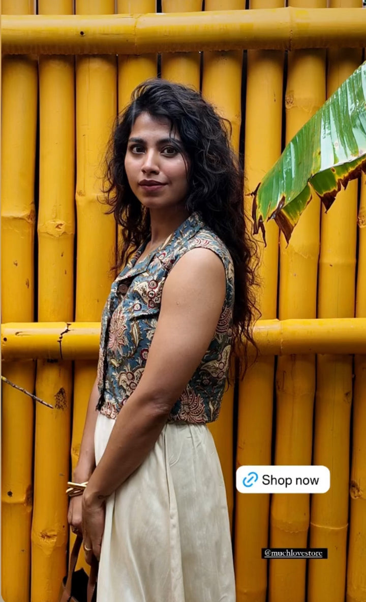 - Handblock Printed Top with wooden blocks